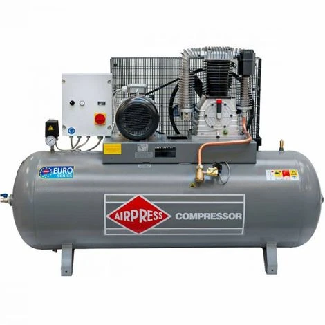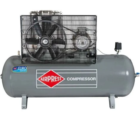 Leistungsstarker Kolbenkompressor mit Riemenantrieb, 500 l Kessel und 400 V Anschluss. Das Markengerät von Airpress verfügt über einen 10 PS starken Elektromotor der nach kürzester Zeit Druckluft bereitstellt. Ideal für den Betrieb von Druckluftwerkzeugen wie Schlagschrauber, Lackierpistolen, Tacker uvm. Für anspruchsvolle Aufgaben im Bereich Landwirtschaft, Werkstatt oder Industrie.