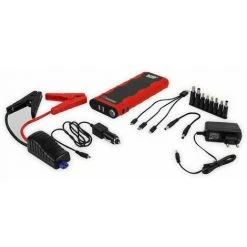 Tragbares Starthilfegerät der neuesten Generation. Durch die eingebauten Lithium Batterien besticht dieses Gerät durch eine höhere Leistung und eine längere Lebensdauer. Features: – Integriertes LED Arbeits- und Warnlicht – LED Anzeige für Batteriestatus – inkl. Polzangen mit Kunststoffisolierung – Automatische Sicherung bei Kurzschluss, Verpolung, Entladung und Überladung – geeignet für Benzinmotoren bis 2000 ccm Technische Daten: – Ladespannung: 15 V / 1 A (über 230 V~ oder 12 V Netzteil) – Ausgangsspannung: 12/19 V – Stromstärke 12 V: 300 A (max. 600 A) – Kapazität: 18.000 mAh – Ladedauer: ca. 6 Stunden – USB-Ausgang: 5 V/ 1 A, 5 V/ 2,0 A – Maße: 224x87x29 mm Lieferumfang: – Starthilfegerät – Netzteil 12 V – Netzteil 230 V – Tasche – Adapterset – 3in1 USB Kabel – Anleitung