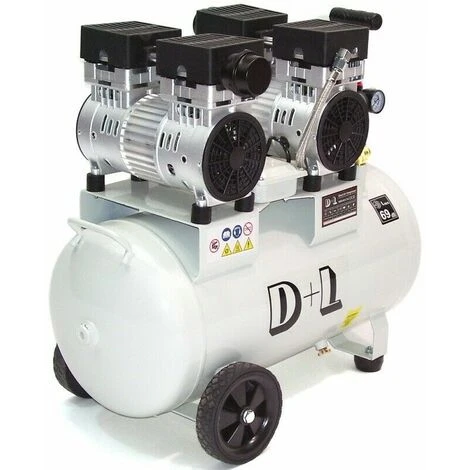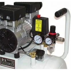 1,5 kW ölfreier Flüster-Kompressor mit 50 Ltr. Druckluftbehälter, V4-Zylinder, incl. Filterdruckminderer mit Öl- und Wasserabscheider
