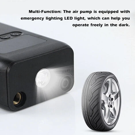 Multi-Funktion: Die Luftpumpe ist mit einer LED-Notbeleuchtung ausgestattet, die Ihnen hilft, im Dunkeln frei zu arbeiten. Mit der USB-Ausgangsschnittstelle konnen im Notfall Mobiltelefone, Tablets, Kopfhorer usw. aufgeladen werden.