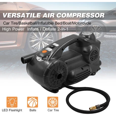 VIELSEITIGE INFLATE & DEFLATE-MASCHINE – 2-in-1-Luftkompressor mit 9 Dusen fur Auto, Fahrrad, Motorrad, mittelgroBes SUV, Sportgerate wie Schwimmringe, Poolspielzeug, Basketball, FuBball, Sportballe und andere Schlauchboote aufblasen und absaugen .