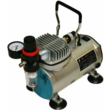 ÖLFREIER MINI-KOMPRESSOR AIRBRUSH KOMPRESSOR LEISE 0-4 BAR GRAU DRUCKMINDERER