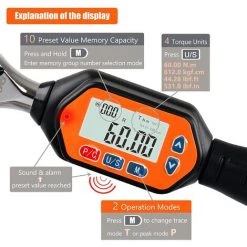 Dieser digitale Drehmomentschlüssel besteht aus hochwertigem Stahl und industriellem ABS-Kunststoff, der Griff und das Gehäuse sind beständig gegen Öl und Lösungsmittel und können unter rauen Bedingungen arbeiten.