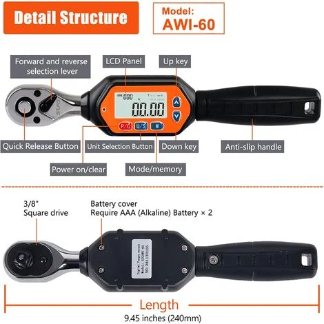 Dieser digitale Drehmomentschlüssel besteht aus hochwertigem Stahl und industriellem ABS-Kunststoff, Griff und Gehäuse sind öl- und lösungsmittelbeständig und können unter rauen Bedingungen eingesetzt werden.