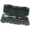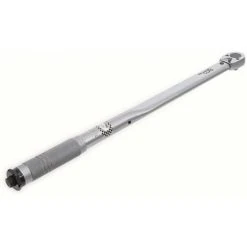 Umschaltknarre mit automatischer Auslösung durch Klicksignal und Fixierung des eingestellten Drehmoments durch Arretierschraube. Liefeung in Kunststoffkassette. Technische Daten: – Länge: 630 mm – Drehmoment: min. 70 Nm – Drehmoment: max. 350 Nm – Abtriebsprofilgröße: metrisch 12,5 mm – Abtriebsprofil: Außenvierkant – Bruttogewicht: 3004 g