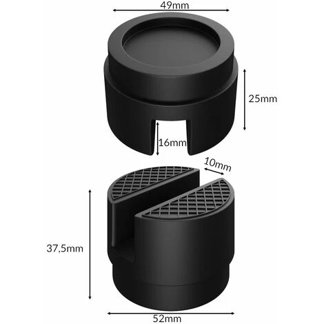 – 1x Gummiauflage Universal: Ø/H: 39,5/36mm x 15,5mm, 1x Gummiauflage XL Universal: Ø/H: 52/49mm x 14mm