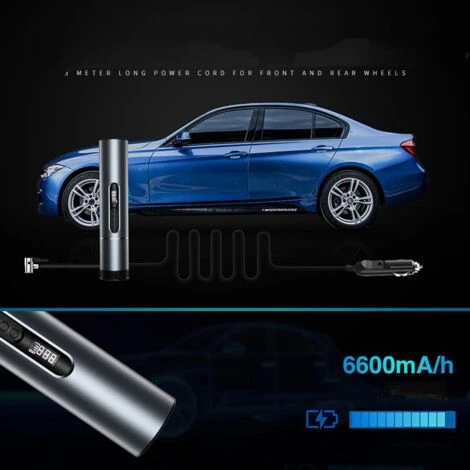 [Design mit doppelter Stromversorgung] ① Diese Fahrrad- und Autoreifenluftpumpe (gleicher Fahrradstoßdämpfer) ist mit einem leistungsstarken wiederaufladbaren Lithium-Ionen-Akku ausgestattet. Die USB-Ladezeit beträgt nur 2,5 Stunden und wird direkt eingesteckt an der Zigarettenanzünderbuchse des Fahrzeugs.
