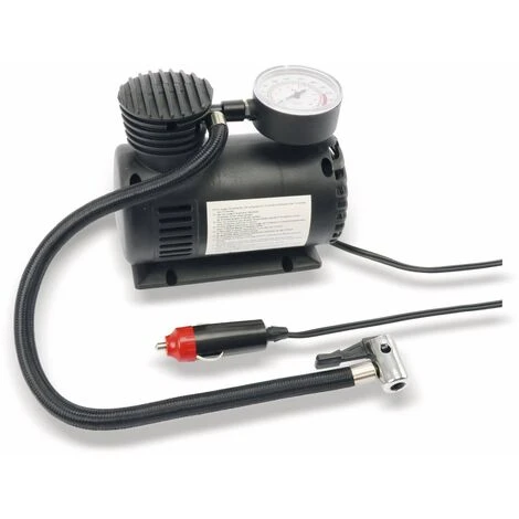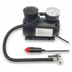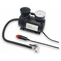 Sehr handlicher Hochleistungs-Kompressor mit Druckanzeige. Einsetzbar für Fahrradreifen, Autoreifen, Schlauchboote, Bälle usw. Anschluss über Zigarettenanzünder. Technische Daten: – Betriebsspannung 12 V- – Stromaufnahme ca. 10 A – Luftdruck max. 250 PSI/17 bar – Anschlusskabel 2,85 m – Druckschlauch-Länge 360 mm – Maße (LxBxH): 140x70x120 mm Lieferumfang: – Kompressor – verschiedene Ventiladapter