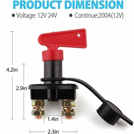Funktion: Dieser Batterieschalter ist geeignet für 6V 12V 24V Systeme, mit 2 Positionen (ON / OFF). Der maximale Strom: 12 V 1000 A