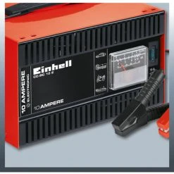 Das CC-BC 10 E Batterie-Ladegerät ist ein leistungsstarkes, automatisches 12 V Elektronik-Ladegerät. Über das eingebaute Amperemeter kann der momentane Ladestrom sicher abgelesen werden. Die Ladeelektronik begrenzt die Ladespannung auf maximal 14,1 V (WU-Kennlinie), eine Überladung der angeschlossenen Batterie ist somit unmöglich und der Ladevorgang muss nicht extra überwacht werden. Das Batterieladegerät eignet sich daher speziell für moderne wartungsfreie Batterien und auch bestens für die Erhaltungsladung selten genutzter Batterien. Die beiden kräftigen, vollisolierten Polzangen gewährleisten jederzeit den optimalen Kontakt zu den Batteriepolen. Am handlichen und stabilen Tragegriff kann das Gerät sicher und einfach transportiert werden.