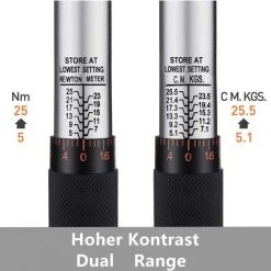 - ▲ 【Hohe Qualität】Die Stahlbandbeschichtung und die Chrombandbeschichtung machen den Schraubenschlüssel langlebig und rostfrei. Die kontrastreiche Dual-Scale-Skala erleichtert das Lesen bei schwachem oder starkem Licht. Griffe aus Kunststoff und Gummi ist sehr Komfort