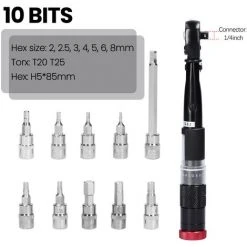 Dieses Drehmomentschlüssel-Set ist ein unverzichtbares Werkzeug für Ihre tägliche Autoreparatur oder Werkstatt. Es enthält einen Drehmomentschlüssel und 10 Bits für Ihren Gebrauch, kommen Sie und probieren Sie es aus, es wird Sie nicht im Stich lassen.
