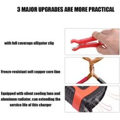 Eigenschaften:Batterieladegerät mit mehreren sicheren Schutzfunktionen, um eine sichere Verwendung zu gewährleisten. Es verfügt über Überspannungsschutz, Übertemperaturschutz, Überladungsschutz, Kurzschlussschutz, Verpolungsschutz, Überstromschutz und Schwachstromschutz.Konstantstromladung, Konstantspannungsladung und Erhaltungsladung, die für die meisten Batterietypen geeignet sind, einschließlich Calcium, Gel und AGM, Nassbatterien.Mit Sommer-und Winter-Modus und in der Lage, die Temperatur zu erkennen, und es wird automatisch auf die entsprechende Spannung umgeschaltet.Geringe Geräusch- und Wärmeableitung: Der geräuscharme Lüfter arbeitet mit einem Aluminiumkühler, der die Lebensdauer des Ladegeräts erheblich verlängert.Ausgestattet mit leisen Kühlgebläsen und Aluminium-Kühler kann die Lebensdauer dieses Ladegeräts verlängert werden.LCD-Digitalanzeige Spannung, Strom, Temperatur, Batteriekapazität in Echtzeit, bequem zu lesen.Reiner Kupfertransformator, stabile Leistung, hohe Umwandlungsrate, Energieeinsparung, große Kapazität usw.Batterietypen: Die meisten Blei-Säure-Batterietypen.Spezifikationen:Steckertyp: EUMaterial: ABS + Kupfer + AluminiumEingangsspannung: AC100-220V, 50 / 60Hz, max. 75WAusgangsspannung: DC13.8-15.5V, Max.6ABatteriebereich: 4-100AhEinzelteil-Größe: 150 * 90 * 65mm / 5.91 * 3.54 * 2.56inArtikelgewicht: 412 gVerpackungsgewicht: 455 gPaket-Größe: 22 * 12 * 7cm / 8.66 * 4.72 * 2.76inPaketliste:1 * Pulsreparatur-LadegerätHinweis:Kann nicht zum Laden des Lithium-Akkus verwendet werden.