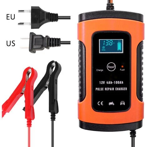 HAPPYSHOPPING 12V 5A Vollautomatisches Autobatterie-Ladegerät Intelligentes Schnelllade-Impuls-Reparatur-Ladegerät Nass-Trocken-Blei-Säure-Ladegeräte Auto-Starthilfe Notstartleistung Mit Digitalem LCD-Display,EU-Stecker