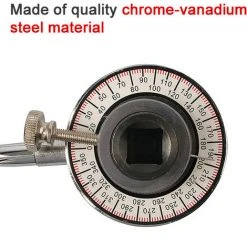 Dieser Drehmomentwinkelmesser besteht aus hochwertigem Chrom-Vanadium-Stahlmaterial, ist verschleißfest und kann eine lange Lebensdauer bieten. Professionelle Fertigung, 1/2 Zoll (12,5 mm) Drehmomentwinkelmesser am Abtriebsende des Schnittstellenausgangs hat eine hohe charakteristische und stabile Leistung. Die Metallbasis ist stabiler, 360-Grad-Messung mit 2-Grad-Schritten und 10-Grad-Intervallen, deutliche Markierungsskala, fette Linien zur einfachen Identifizierung.
