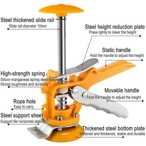 Dieses Höhenmessgerät für Wandfliesen verfügt über eine Hochleistungs-Hochdruckfeder, mit der Sie die Höhe einfach einstellen können, indem Sie den Griff halten. Es ist ideal zum Nivellieren von Fußböden oder Fliesensystemen für perfekte Ergebnisse.