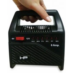 Robustes Ladegerät für Starterbatterien von Autos, Motorräder, Maschinen usw. Die kräftigen, isolierten Polklemmen bieten optimalen Kontakt zu den Batteriepolen. Nach Vollladung fährt das Gerät automatisch die Ladung herunter, damit die Batterie nicht beschädigt wird. Features: – Geeignet für Blei-Gel, Blei-Säure und AGM Batterien – KST-Gehäuse mit integriertem Tragegriff – LED-Zustandsanzeige, – Thermischen Überlastungs- und Kurzschlussschutz – Automatischer Abschaltung bei Überhitzung Technische Daten: – Betriebsspannung: 230 V~ – Ladespannung: 6 + 12 V- – Ladestrom: 6 A – Batteriekapazität 15…80 Ah – Gewicht: 1,32 kg Lieferumfang: – Ladegerät – Bedienungsanleitung