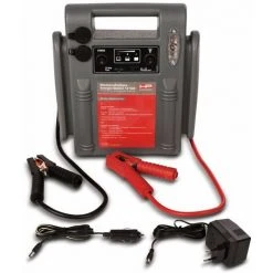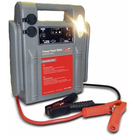Dieser tragbare Jumpstarter ist ein idealer Startverstärker für Ihr Auto oder Motorrad. Die hochwertige Starthilfe sorgt dafür, dass Sie nie überrascht werden. Features: – Geeignet für Auto, Motorrad, Boot, Camping – Mit Schutzschaltung und automatischer Sicherung – Ein-/Ausschalter – Mit zwei 12 V- Steckdosen – Integrierte Arbeitsleuchte – Ladezustandsanzeige – Halter für Starhilfekabel und Klemmen – Ladung mit beiliegendem 230 V~ Netzteil oder über 12 V- Zigarettenanzünder Steckdose Technische Daten: – Akkukapazität: 17 Ah – Spitzenstrom: 900 A – Starthilfestrom: 400 A – Akkuspannung: 12 V- – 2x 12 V- Steckdosen – Maße (LxBxT): 320x290x100 mm Lieferumfang: – Portabele Power-Station – Krokoklemmen – Netzteil – Kfz-Adapter – Anleitung