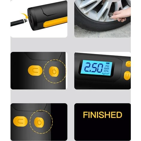 [Schnell aufblasbar] Der maximale Druck der tragbaren aufblasbaren Pumpe kann 150 psi erreichen. Sobald Sie eingerichtet sind, können Sie ihn sofort zum Befüllen des Autoreifens verwenden. Sie müssen die Starttaste drücken, um den Bildschirm zu öffnen. Dann drücken Sie kurz den Startknopf zum Aufpumpen.Die [aufladbare und tragbare USB-Reifenpumpe] verfügt über eine 1500-mm-Lithiumbatterie, die drahtlos verwendet werden kann, was die Reifen im Notfall schont. . Es ist klein und bietet Stauraum auf der Rückseite. Es kann Zubehör aufbewahren.