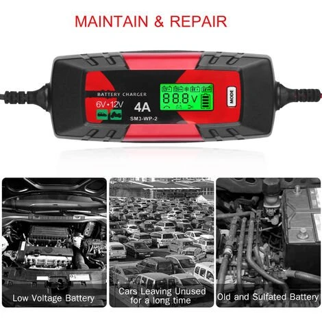 Vielseitig Ladegerät & Maintainer — automatisch oder manuell Dual Art und Weise passt den Ladestrom und Wartbarkeit. Automatisch von einem schnellen Ladeschalt, nach oben-off, dann auf Erhaltungsladung. Pulse Reparatur-Funktion kann helfen, Ihren Verlust Batterie zu reparieren und die Batterielebensdauer zu verlängern.