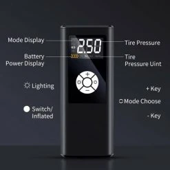 [LED-Licht]Der tragbare Luftkompressor kann im Notfall als Taschenlampe verwendet werden Beleuchtungsgerät im Dunkeln. [4 Modi]Eine Taste zum Umschalten zwischen vier Modi, einschließlich Automodus, Motorradmodus, Fahrradmodus und Ballmodus. [Sicher zu verwenden]Reifendruck voreinstellen, dann auf Start klicken, die Maschine stoppt automatisch, wenn der Reifen mit Luft gefüllt ist. [Große Kapazität]Der Luftkompressor verfügt über einen eingebauten wiederaufladbaren Lithium-Akku mit 4000 mAh. Sie können den Luftkompressor über ein USB-Kabel aufladen. [Druck messen]Schließen Sie einfach Ihre Luftpumpe an einen Ihrer Reifen an, der Reifenfüller erkennt automatisch den aktuellen Druckstatus.< br />