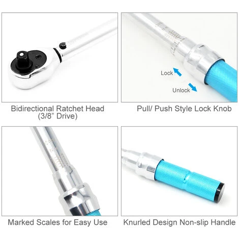 Dieser Drehmomentschlüssel ist ein Präzisionsinstrument, das nur zum Anziehen von Schrauben, Bolzen und Muttern mit einem gewünschten Drehmoment bestimmt ist. Mit einem einstellbaren Drehmoment von 5 bis 60 Nm und einer doppelten Ratschenrichtung kann es in der Automobilreparatur, der mechanischen und elektrischen Wartung, der Möbelinstallation, der Energietechnik, der Fertigungsindustrie usw.