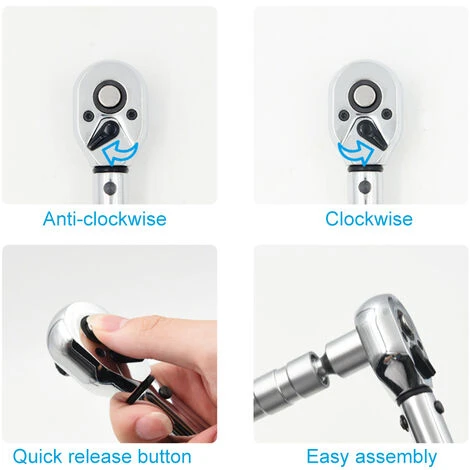 Mit Schnellverschlussknopf, einfach zu montieren und die Magnethülse zu entfernen. Mit Kippschalter, einfaches Umschalten der Ratschenrichtung zwischen im Uhrzeigersinn und gegen den Uhrzeigersinn.