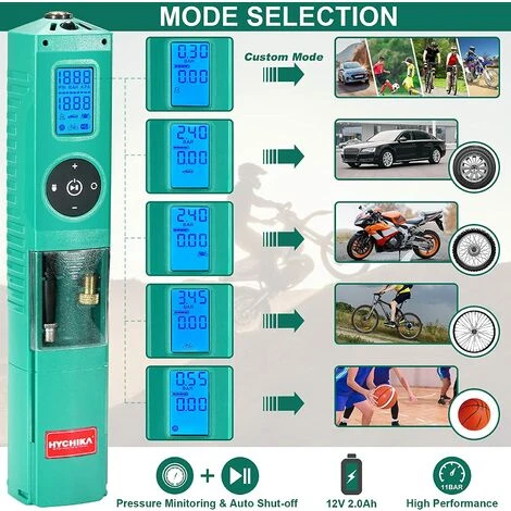 - Fünf verschiedene Schnittstellen zum Einstellen des Luftdrucks stehen den Benutzern zur Auswahl: Automodus, Motorradmodus, Fahrradmodus, Ballmodus und benutzerdefinierter Modus.