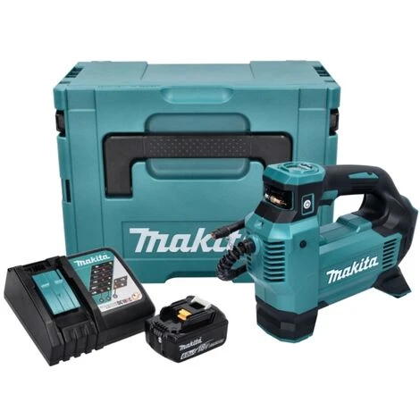 Der Makita DMP 181 Z Akku Kompressor ist der perfekte Begleiter wenn es um exaktes und effektives Aufpumpen von Reifen, Bällen und der Gleichen geht. Mit einem maximalen Druck von bis zu 11,1 bar und den drei Stufen ist er für sämtliche Arbeiten geeignet. Die verbaute LED Leuchte sorgt für ein gutes Ausleuchten der Umgebung bei schlechteren Lichtverhältnissen. Des Weiteren verfügt der 18 Volt Akku Kompressor über einen 65 cm langen Schlauch und diverse Ventile. Das Digitale Display ist aus allen Winkeln gut ablesbar. Darüber hinaus merkt sich der DMP 181 die Druckeinstellung von der letzten Nutzung. Entscheidend ist auch das geringe Gewicht von gerade einmal 2,1 Kg, somit ist ein Einsatz überall möglich. Makita ist ein führender Hersteller für Elektrowerkzeug, der sich vor allem durch eine hohe Verarbeitungsqualität und eine lange Tradition auszeichnet.