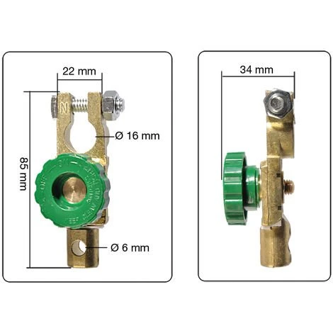 Der Universaltrennschalter ist ausgelegt für 6V, 12V und 24V. Durch das Öffnen des Drehrads (grün) wird die Stromzufuhr unterbrochen, das ermöglicht die Trennung der Batterie vom Netz, ohne diese ausbauen zu müssen. Dadurch erreichen Sie auch eine sehr einfache und effektive Diebstahlsicherung. Weitere Batterieschalter erhalten Sie in unserem Shop.