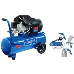 Präsentation : Pack SCHEPPACH – Kompressor 50L – 2200W – HC53DC – Satz mit 5 Druckluft-Zubehörteilen – 3906101704, Komplettpaket für die meisten Ihrer Anforderungen. Jede Arbeit in der Werkstatt kann leicht erledigt werden.