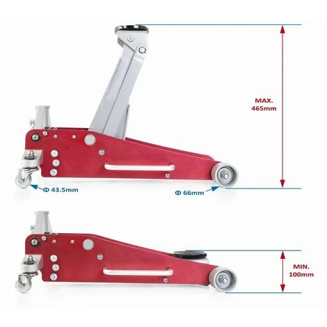 Der Wagenheber von Primaster in Profi-Qualität ist durch die niedrige Mindesthubhöhe von 10 cm ideal auch für tiefergelegte Autos.Hublast: max. 2500 kg Unterfahrhöhe 100 mm Hubhöhe: max. 465 mm Gewicht ca. 25,9 kg 2 Lenkrollen großer Auflageteller Ø 110 mm auch für tiefergelegte Fahrzeuge
