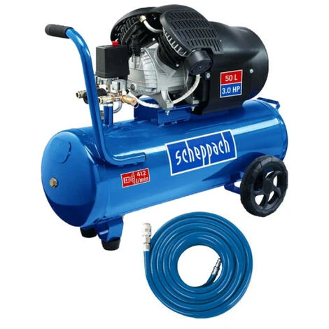 SCHEPPACH Pack:1 x Kompressor 50L – 2200W – HC53DC1 x Schlauch 15 mLin der Originalverpackung geliefert. Garantie: 5 Jahre (+ Verlängerung um 5 Jahre nach Produktregistrierung)