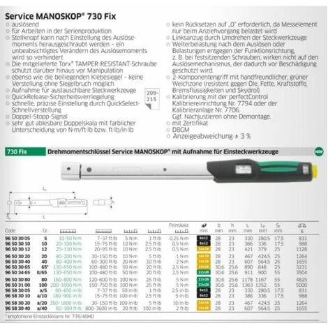 STAHLWILLE 730 Fix Drehmomentschlüssel Service MANOSKOP® fürEinsteckwerkzeuge Gr. 5; 10-50 Nm | Hersteller-Nr.: 96503005 | EAN: 4018754269433 |