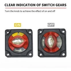 Dieser Schalter eliminiert jegliche Stromaufnahme zur Batterie, wenn das Fahrzeug oder Boot nicht benutzt wird, und trennt die Batterie sicher.