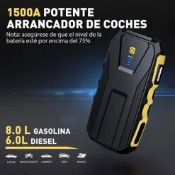 Tacklife KP150 Auto-Starthilfe, 1500 A, für Benzinmotoren bis 8 L und Dieselmotoren bis 6 L, Autobatterie-Starthilfe mit IP65, Quick Charge 3.0 und LED-Licht