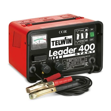 Ladegerät Telwin Leader 400 Start Telwin Leader 400 Start ist ein Batterieladegerät und Starter zum Aufladen von Batterien mit freiem Elektrolyt (WET) mit einer Spannung von 12-24V und Starten von jeder Art von Benzinmotor. Seine Hauptmerkmale sind: Auswahl der normalen Ladung, Schnellladung (BOOST), Schnellstart, Anzeige von Lade- und Anlaufstrom, Schutz vor Überlastungen und Polaritätsumkehrungen.Tensione di rete (V50-60Hz)230-1phPotenza assorbita avviamento/caica(Kw)6,4/1Tensione di carica/avviamento (V)12-24Corrente di carica efficace 12V (A)45Corrente di carica convenzionale 12V (A)30Corrente di picco in avviamento (A)300Corrente di carica convenzionale (A)180Posizioni di regolazioni (Nr)3Dimensioni prodotto (Cm)26,5×34,5x23Peso (Kg)10,9