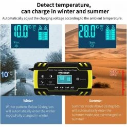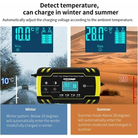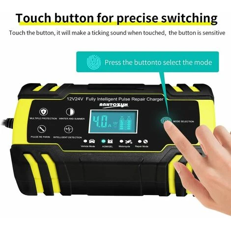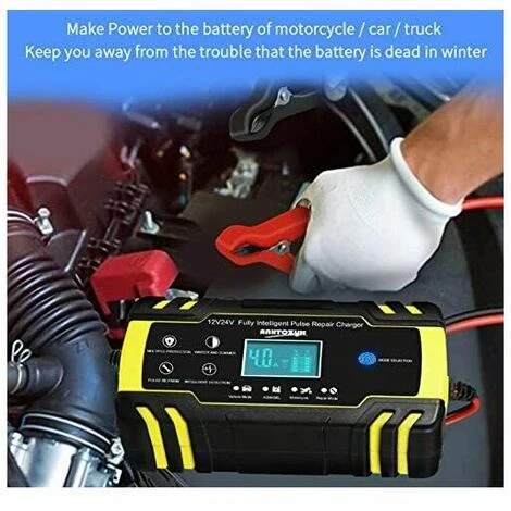【Umfang des Ladegeräts】 Das Aufladen der Lithium-Batterie ist strengstens verboten. Optionale Nennleistung: 12 V 8 A, 24 V 4 A; Minimale Startspannung: 2,0 V; Batteriebereich: 6-150Ah. (für AGM, GEL, MF, SLA, VRLA) Diagnose und Reparatur von Batterieproblemen und Verlängerung der Batterielebensdauer für Autos, Lastwagen, Motorräder, Rasenmäher oder Boote, Autos, Lastwagen, ATVs, SUVs und mehr. 【Mehrfacher Sicherheitsschutz des Ladegeräts】 Das Ladegerät verwendet verschiedene Sicherheitsfunktionen. Flower Flammschutzmittel, Überspannungsschutz, Überstromschutz, Verpolungsschutz (positiver und negativer Verbindungsfehler), Kurzschlussschutz, Übertemperaturschutz. Achten Sie auf Ihre Sicherheit. Außerdem verwendet die Ladeseite einen Lüfter, um eine Überhitzung während des Ladevorgangs zu verhindern. Verlängern Sie die Lebensdauer des Ladegeräts. 【Intelligenter digitaler LCD-Touchscreen】 Autoladegeräte können die Funktion mit dem Touchscreen ändern und automatisch die Außentemperatur erkennen, um selbst in den Sommer- oder Wintermodus zu wechseln. Selbstadaptive Regelung auf Strom oder Spannung ohne manuelle Regelung; Wenn der Akku aufgeladen ist, schlägt der Ladevorgang automatisch fehl. Das automatisch wechselnde Datenkarussell zeigt Temperatur, Ladespannung, Ladestrom und Akkuladung an. 【Reparaturfunktion, Spannungs- und Leistungserkennung】 Die Hochfrequenz- und Niederfrequenz-Impulstechnologie hat gute Reparatur- und Aktivierungseffekte. Geeignet für Niederspannungsbatterien, Batterien, die längere Zeit nicht verwendet werden, beschädigte Batterien und vulkanisierte Batterien. Schließen Sie die Batterie an, ohne die Stromversorgung anzuschließen. Es kann die Restspannung der Batterie anzeigen. Behalten Sie den Zustand Ihres Akkus im Auge und prüfen Sie, ob er aufgeladen werden muss. 【Hinweis zum Ladegerät】 Hinweis: Auf dem Produktbildschirm befindet sich eine sehr dichte Schutzfolie. Wenn das Produkt Spuren aufweist, zweifeln Sie nicht daran. Dies ist nur die Oberfläche des Films. Sie sehen einen brandneuen Bildschirm, wenn Sie den Film rippen. Merkmale: Typ: Vollautomatisches Smart-Ladegerät AC-Eingang: 100-240 V, 50 / 60 Hz Stromausgang: 12 V 8 A, 24 V 4 A Ausgangsspannung: 12 V / 24 V Leerlauf-Ausgangsspannung: 13,8 V Mindeststartspannung: 3,2 W Batteriekapazität: 6 -150Ah (12V), 6-100Ah (24V) Betriebstemperatur: -20° ~ 45° Kühlmethode: Lüfter Zertifizierung: CE, FC, R- ohs, PSE Batterietyp: 3-Stufen-Ladegeräte sind für die meisten Bleiarten geeignet -Säurebatterien, einschließlich Calcium-, Gel- und AGM-, SLA-, VRLA-, Nass-EFB-Batterien usw. Bemerkungen 1. Dies ist ein vollautomatisches Ladegerät mit 3 Ladestufen. 2. Automatisches Laden schützt den Akku vor Überladung. Auf diese Weise können Sie das Ladegerät unbegrenzt an die Batterie angeschlossen lassen. (Wenn Sie längere Zeit ausgehen, verwenden Sie es aus Sicherheitsgründen nicht immer bei der Arbeit.)