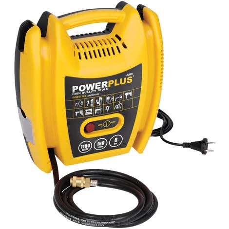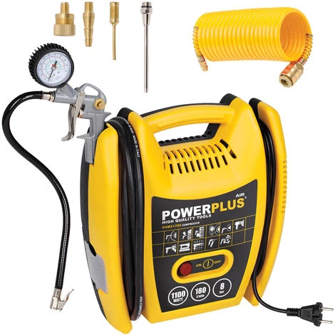 Elektrischer Luftdruck Kompressor mit einem maximalen Druckaufbau von 8 Bar, einem integrierten Druckschlauch und Reifendruckfüllpistole. Der tragbare Druckluft Kompressor ist ideal um Autoreifen, Bälle, Matrazen oder ähnliches aufzupumpen. Das Gerät besitzt keinen Luftkessel, wird ölfrei betrieben und ist durch seine kompakte Form der perfekte Helfer rund um Haus, Auto und Freizeit.
