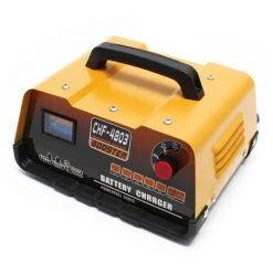 Das vollautomatische Batterieladegerät mit praktischem Tragegriff ist schnell einsatzbereit und eignet sich zum Aufladen von Batterien mit 12 V oder 24 V.